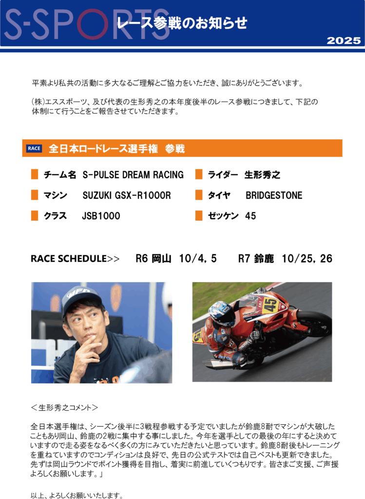 カテゴリー: S-PULSE DREAM RACING, お知らせ